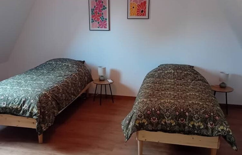 Chaque gîte dispose de deux chambres, une avec un lit double et l'autre avec deux lits simples, ainsi que d'une salle de bain privée et d'une connexion WI-FI pour votre confort.